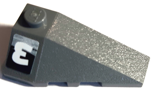 Wedge 4 x 2 Triple Right with Upside Down White Number 3 and Black and Gray Swirl Pattern #2 (Sticker) - Set 8161