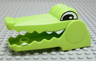 Duplo Figure Head Animal 2 x 2 Base Alligator / Crocodile with Opening Jaw with Black and White Eyes and Teeth Pattern