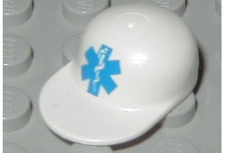 Minifigure, Headgear Cap - Long Flat Bill with Blue EMT Star of Life Pattern