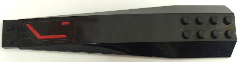 Wedge 16 x 4 Triple Curved with Reinforcements with Red Stripes and Bent Dark Bluish Gray Lines Pattern Model Left Side (Sticker) - Set 76087