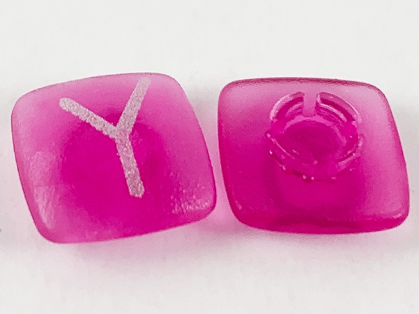Clikits, Icon Square 2 x 2 Small with Pin, Frosted with Silver Capital Letter Y Pattern