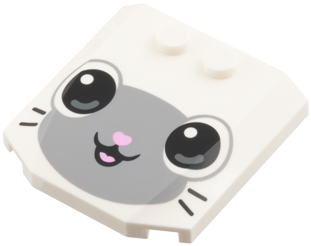 Wedge 4 x 4 x 2/3 Triple Curved with Light Bluish Gray Face, Black Whiskers, Bright Pink Nose Pattern (Pandy Paws)