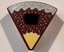 Minifigure, Headgear Head Cover, Costume Wedge Slice with Cake with Sprinkles, White and Bright Light Yellow Frosting Pattern (BAM)