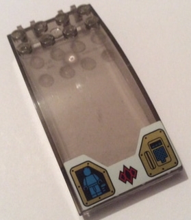 Windscreen 8 x 4 x 2 Curved with Locking Dual 2 Fingers with Dark Azure Minifigure and Keypad, Gold Panels on White Background Pattern (Sticker) - Set 70595