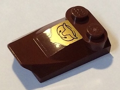 Slope, Curved 3 x 2 x 2/3 with 2 Studs, Wing End with Pearl Gold Longhorn Pattern (Sticker) - Set 70812