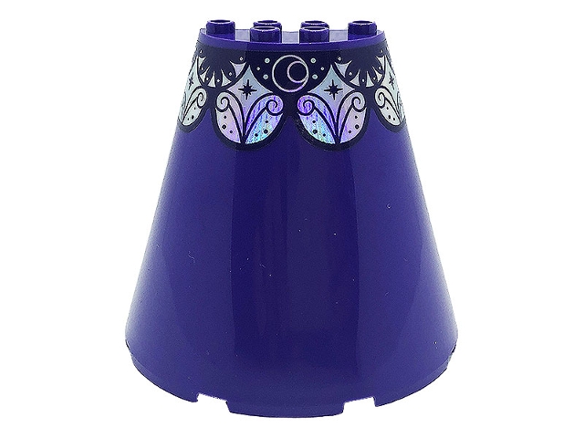 Cone Half 8 x 4 x 6 with Dark Purple and Silver Stars, Dots and Swirls Pattern (Sticker) - Set 41685