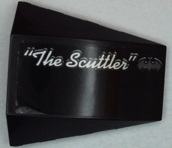 Wedge 4 x 4 Triple Curved No Studs with Batman Logo, Silver Script '"The Scuttler"' Pattern Model Right Side (Sticker) - Set 70908