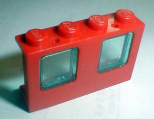 Window 1 x 4 x 2 Plane, Single Top Hole and Double Bottom Holes for Glass with Trans-Light Blue Glass (4863 / 4862)