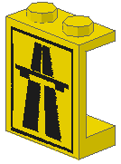 Panel 1 x 2 x 2 - Solid Studs with Black Highway, Overpass and Rectangle Pattern