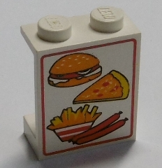 Panel 1 x 2 x 2 - Solid Studs with Hamburger, Pizza, Fries, and Sausages Pattern