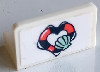 Panel 1 x 2 x 1 with Coral and Dark Blue Heart-Shaped Life Preserver and Light Aqua Shell Pattern (Sticker) - Set 41378
