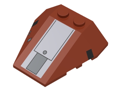 Wedge 4 x 4 Triple with Stud Notches with Dark Bluish Gray Rectangle and Dot on Light Bluish Gray Background Pattern (Boba Fett's Slave I - Mini Hull Plates)
