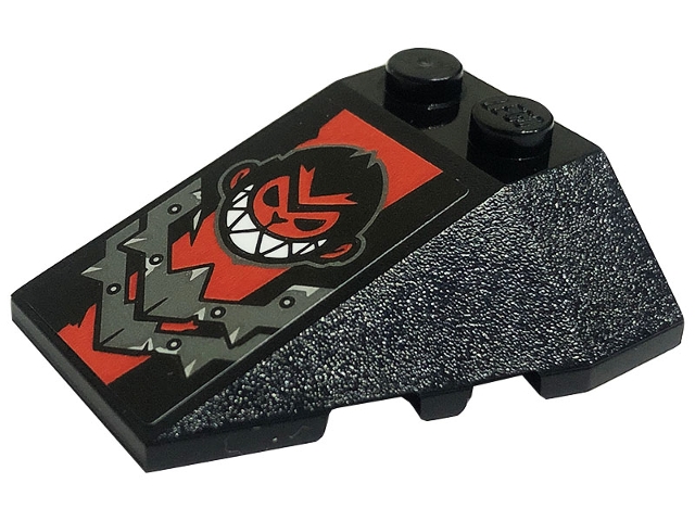 Wedge 4 x 4 Triple with Stud Notches with Dark Bluish Gray Metal Plates, Rivets, Red Stripe and Monkey Head Pattern (Sticker) - Set 80033