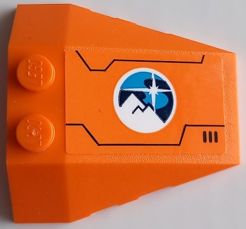 Wedge 4 x 4 Triple with Stud Notches with Dark Blue, Dark Azure and White Arctic Explorers Logo, Lines and Air Vent Pattern Model Left Side (Sticker) - Set 60196