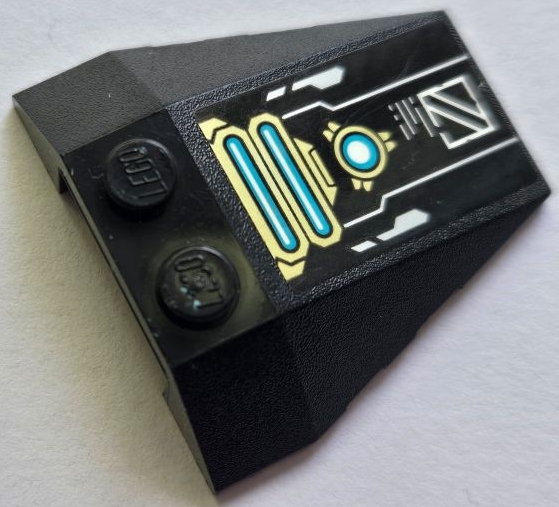 Wedge 4 x 4 Triple with Stud Notches with Gold Armor, Medium Azure Lights and Square Pattern Model Left Side (Sticker) - Set 71765