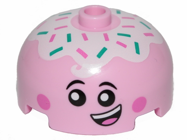 Brick, Round 3 x 3 x 1 1/3 Dome Top - Open Stud with Face with Smile, Eyes with Pupils, Pink Cheeks and Topping Pattern