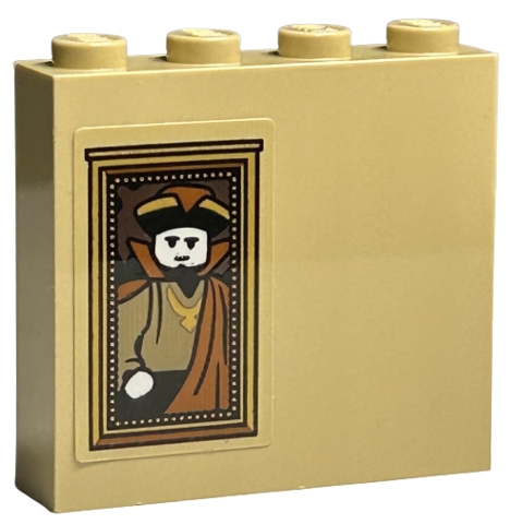 Brick 1 x 4 x 3 with Picture of Wizard with Dark Orange Cape in Gold Frame Pattern (Sticker) - Set 40577