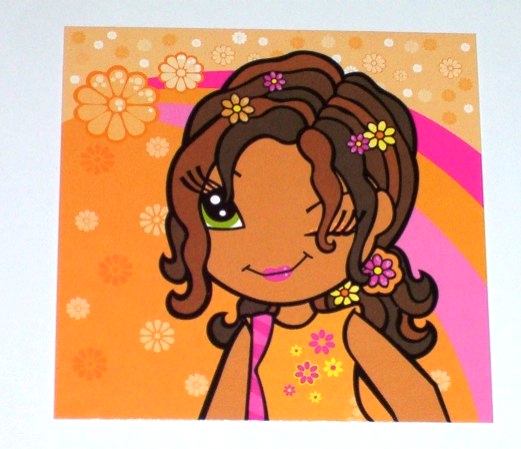 Clikits Frame Insert, Paper 10 x 10 with Daisy Character Winking on Orange Background Pattern