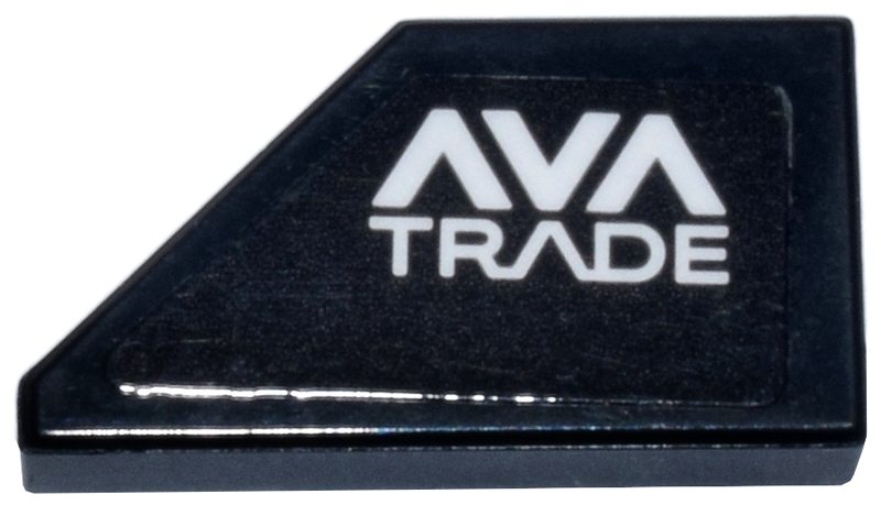 Tile, Modified 1 x 2 Wedge Right with White 'AVA TRADE' Logo Pattern (Sticker) - Set 77245