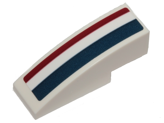 Slope, Curved 3 x 1 with Dark Blue, White, and Dark Red Stripes Pattern Right (Sticker) - Sets 75205 / 75290