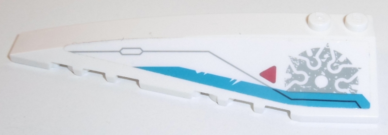Wedge 10 x 3 Left with Dark Azure Stripe, Light Bluish Gray Shuriken Throwing Star and Red Triangle Pattern (Sticker) - Set 70673