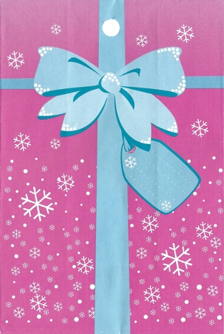 Clikits Paper, Party Favor Bag with Snowflakes, Ribbon, and Bow on Dark Pink Background Pattern