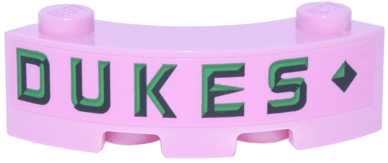 Brick, Round Corner 3 x 3 Macaroni with 2 Studs with Green, Bright Green and Black Diamond and 'DUKES' Pattern Model Left Side (Sticker) - Set 76457