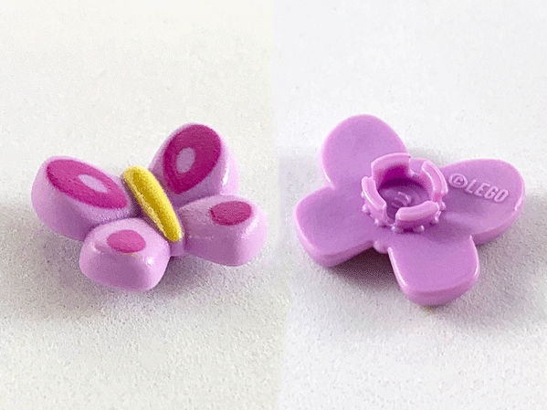 Clikits, Icon Butterfly 2 x 2 with Pin with Bright Light Yellow Body and Light Purple Wing Markings Pattern