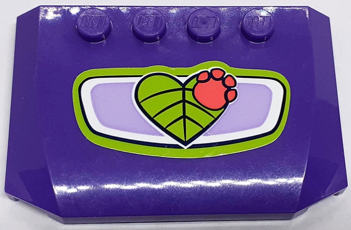 Wedge 4 x 6 x 2/3 Triple Curved with Lime Heart-Shaped Leaf and Coral Paw Print Pattern (Sticker) - Set 41421