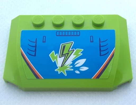 Wedge 4 x 6 x 2/3 Triple Curved with Lime Lightning Bolts, Leaves, Dark Blue Air Intake Vents, Dark Purple, Orange and White Stripes on Dark Azure Background Pattern (Sticker) – Set 41371