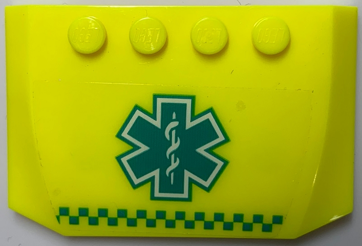 Wedge 4 x 6 x 2/3 Triple Curved with Dark Turquoise EMT Star of Life and Checkered Stripe Pattern (Sticker) - Set 60330