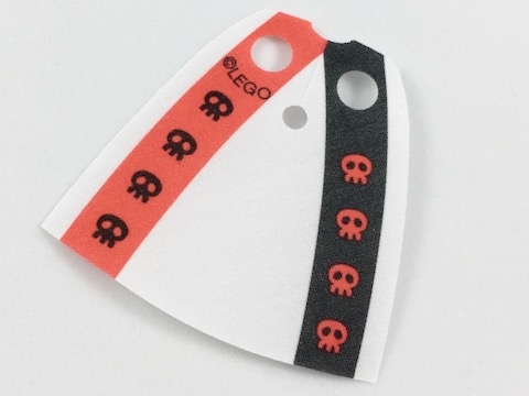 Minifigure Cape Cloth, Standard - Starched Fabric - 4.0cm Height with 4 Black Skulls in Red Stripe and 4 Red Skulls in Black Stripe Pattern