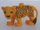 Duplo Cat, Large, Adult Female (Leopard) with Black Nose and Eyes Almond Shaped, Reddish Brown Tail End and Spots Pattern