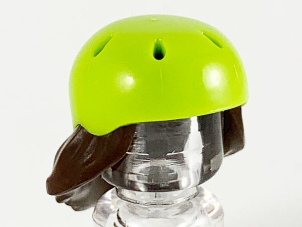 Minifigure, Hair Combo, Hair with Hat, Medium Length with Molded Lime Bicycle Helmet Pattern