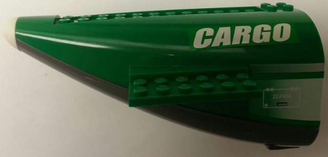 Aircraft Fuselage Aft Section Curved with Fixed Dark Bluish Gray Base and White Hard Rubber Tip with White 'CARGO' and '32.P456', Access Panel Pattern on Both Sides (Stickers) - Set 7734