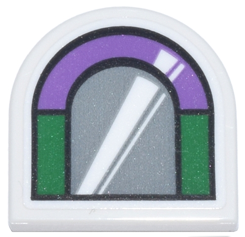 Tile, Round 2 x 2 Half Circle Extended with Black, Green, and Medium Lavender Window Frame with Silver Window and White Reflection Pattern (Sticker) - Set 76437