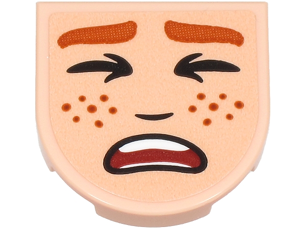 Tile, Round 2 x 2 Half Circle Extended with Dark Orange Eyebrows and Freckles, Squinting Eyes, Scared Open Mouth with Teeth Pattern (HP Ron Weasley Face) (Sticker) - Set 76470