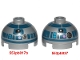 Brick, Round 2 x 2 Dome Top with Dark Pink Dots, Large Receptor and Dark Blue Pattern (R2-D2)