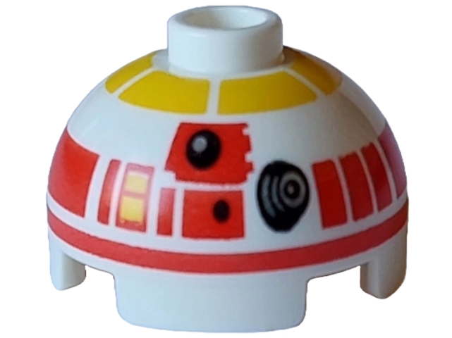 Brick, Round 2 x 2 Dome Top with Band Around Dome, Red and Yellow Panels and Black and Silver Photoreceptor / Dots Pattern (L3-GO)