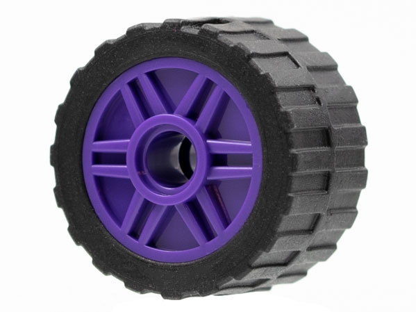 Wheel 18mm D. x 14mm with Pin Hole, Fake Bolts and Shallow Spokes with Black Tire 24 x 14 Shallow Tread, Band Around Center of Tread (55981 / 89201)