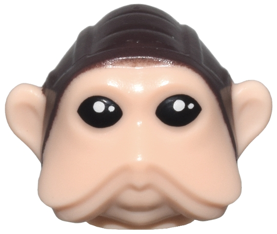 Minifigure, Head, Modified SW Sullustan with Long Cheek Folds with Dark Brown Aviator Cap and Black Eyes Pattern
