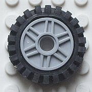 Wheel 18mm D. x 8mm with Fake Bolts and Shallow Spokes with Black Tire 24mm D. x 8mm Offset Tread - Interior Ridges (56902 / 3483)