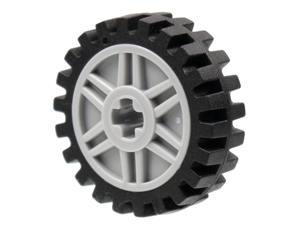 Wheel 18mm D. x 8mm with Fake Bolts and Shallow Spokes and Axle Hole with Black Tire 24mm D. x 7mm Offset Tread - Band Around Center of Tread (56903 / 61254)