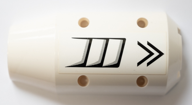 Vehicle, Tipper Drum 3 x 6 x 10 Half with 4 Pin Holes with Black and Light Bluish Gray Air Vents and 2 Chevrons Pattern Model Left Side (Sticker) - Set 42052