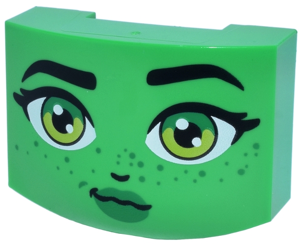 Wedge 3 x 4 x 1 1/3 Triple Curved No Studs with Black Eyebrows and Nose, Lime Eyes, Green Freckles and Lips Pattern (Wicked Elphaba Face)