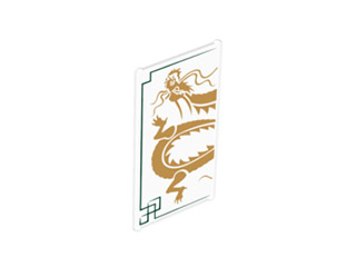 Glass for Window 1 x 4 x 6 with Dark Green Lines and Gold Dragon Head and Midsection on White Background Pattern