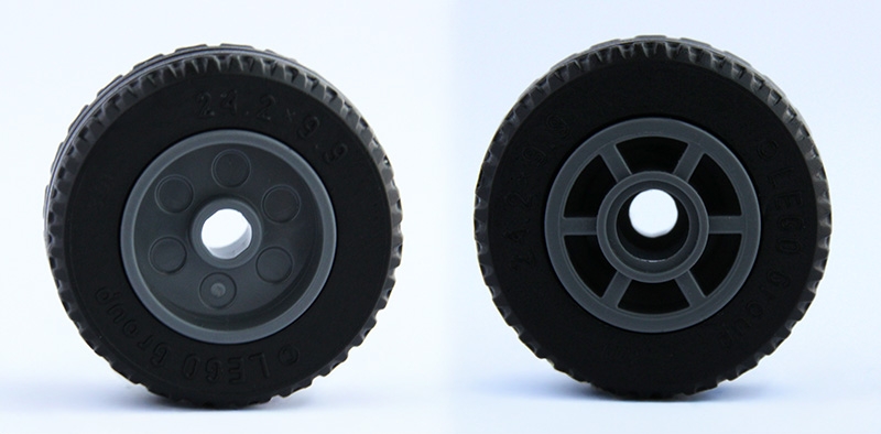Wheel 14mm D. x 11mm with Center Groove, Fake Bolts, 6 Spokes and Flange with Black Tire 24.2 x 9.9 (5807 / 5033)