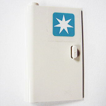 Door 1 x 3 x 4 Left - Open Between Top and Bottom Hinge with Maersk Star Logo Pattern (Sticker) - Set 10219