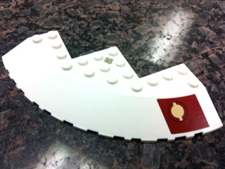 Brick, Round Corner 10 x 10 with Slope 33 Edge, Axle Hole, Facet Cutout with Jedi Logo on Dark Red Pattern Model Right (Sticker) - Set 9526
