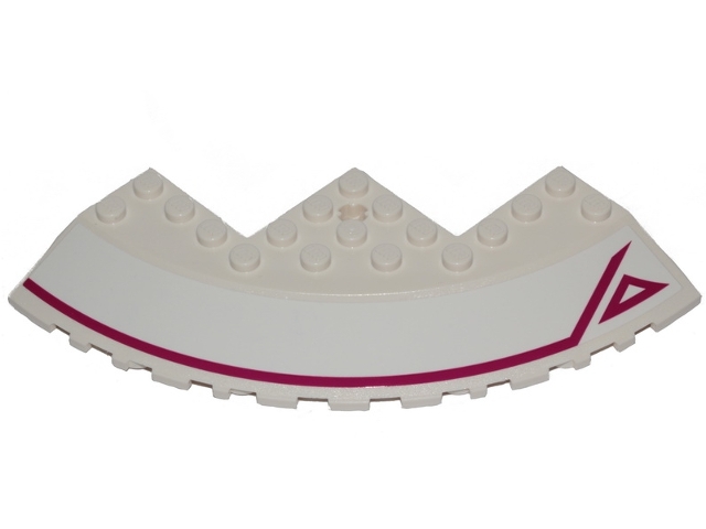 Brick, Round Corner 10 x 10 with Slope 33 Edge, Axle Hole, Facet Cutout with Magenta Stripe and Outlined Triangle Pattern Model Right Side (Sticker) - Set 70849